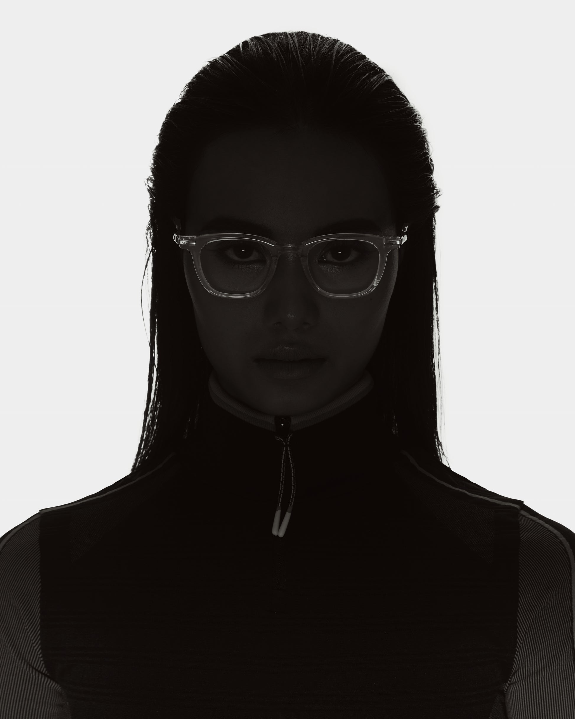 Square frame with a subtly curved upper line and balanced, contemporary structure, completed by slanted temples that contour the head for a sleek athletic silhouette.